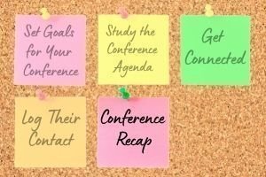 Keep yourself accountable by sharing your goals with a trusted industry peer, friend, partner, or even an industry-related social media group. Ask someone who is close to you to set aside time with you (5 min.) mid-conference and post-conference to check in on your goal progress.
